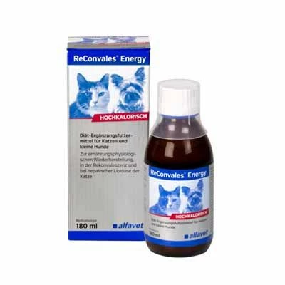 ReConvales® Energy ist eine hochkalorische, sehr schmackhafte Flüssignahrung. Schlecht fressende und/oder untergewichtige Katzen und Hunde können mit ReConvales® Energy mit zusätzlicher Energie, hochwertigen Eiweißen, Elektrolyten, Vitaminen und Spurenelementen versorgt werden.