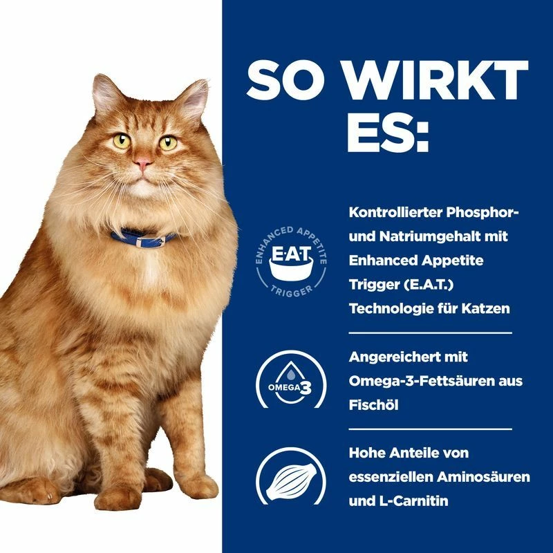 Mit der Enhanced Appetite Trigger (E.A.T.)™ Technologie, die den Appetit von Katzen mit Nierenerkrankungen stimuliert, für eine bis zu 35% höhere Kalorienaufnahme als bei anderen kommerziell erhältlichen Nierendiäten