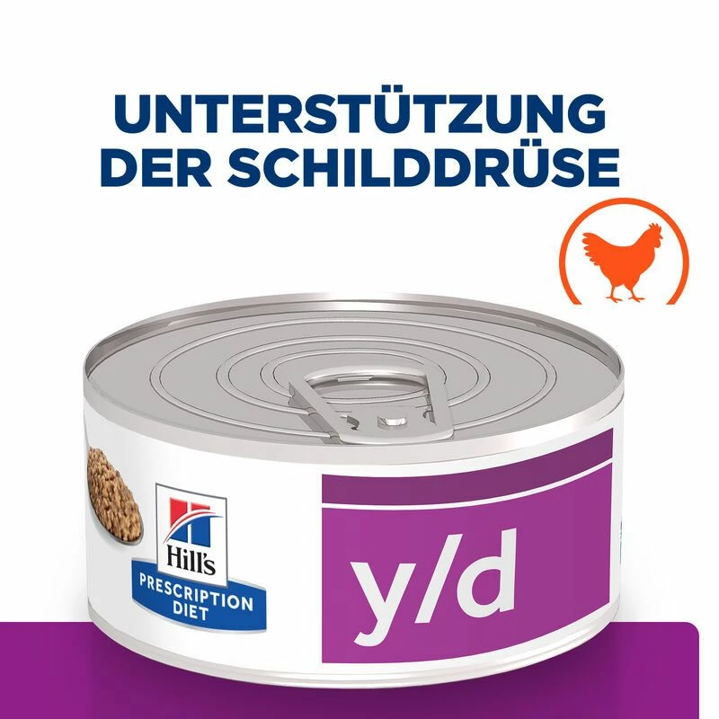 Hills Feline y/d gibt es als Trockenfutter und als Nassfutter.