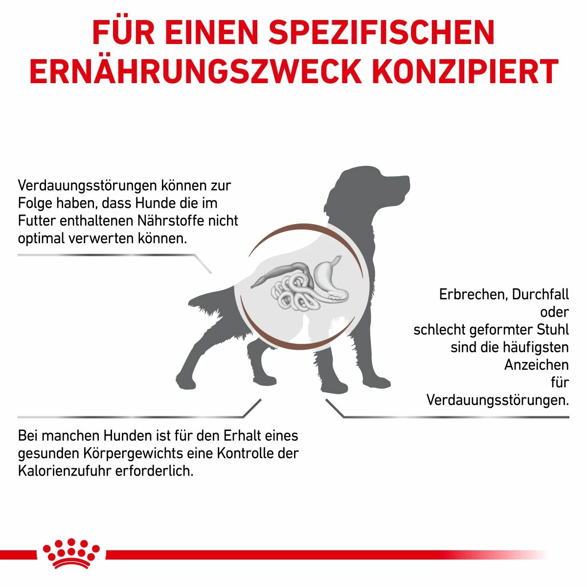 ROYAL CANIN GASTROINTESTINAL MODERATE CALORIE Trockenahrung ist ein Diät-Alleinfuttermittel für Hunde zur Linderung akuter Resorptionsstörungen des Darms und zum Ausgleich unzureichender Verdauung.