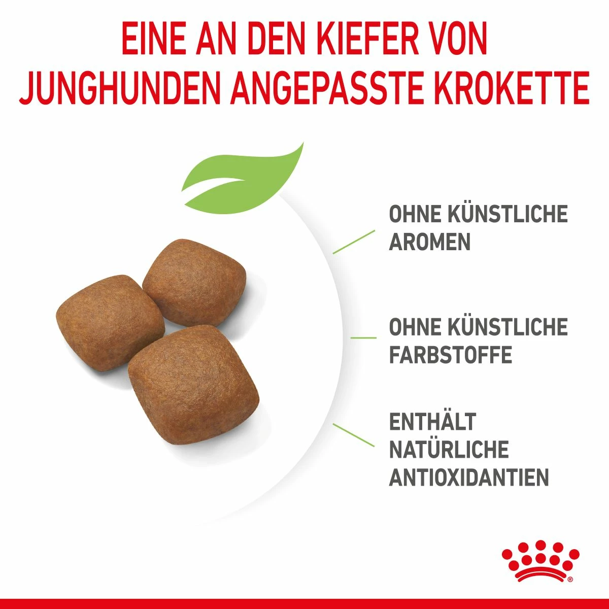 ROYAL CANIN Giant Junior ist speziell auf die Ernährungsbedürfnisse von Welpen besonders großer Rassen abgestimmt. Das Futter ist für Welpen der Riesenrassen im Alter vom 8. bis 18./24. Monat geeignet, die im ausgewachsenen Alter ein Gewicht ab 45 kg erreichen.