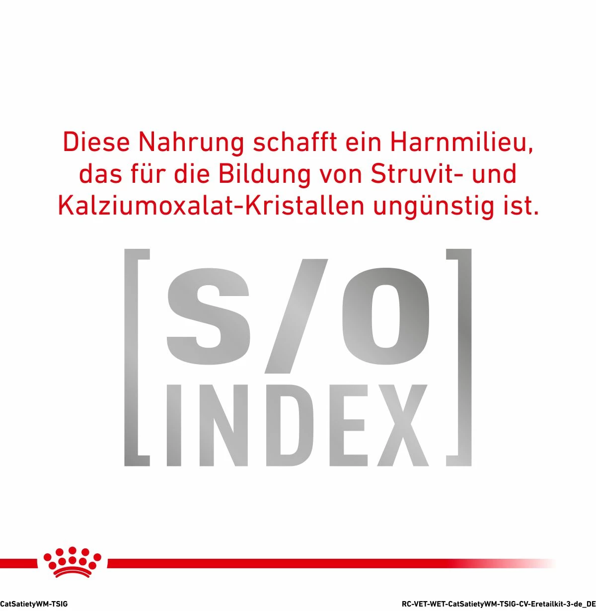Royal Canin Satiety Weight Management erzeugt ein für die Bildung von Struvit- und Kalziumoxalatsteinen ungünstiges Harnmilieu.