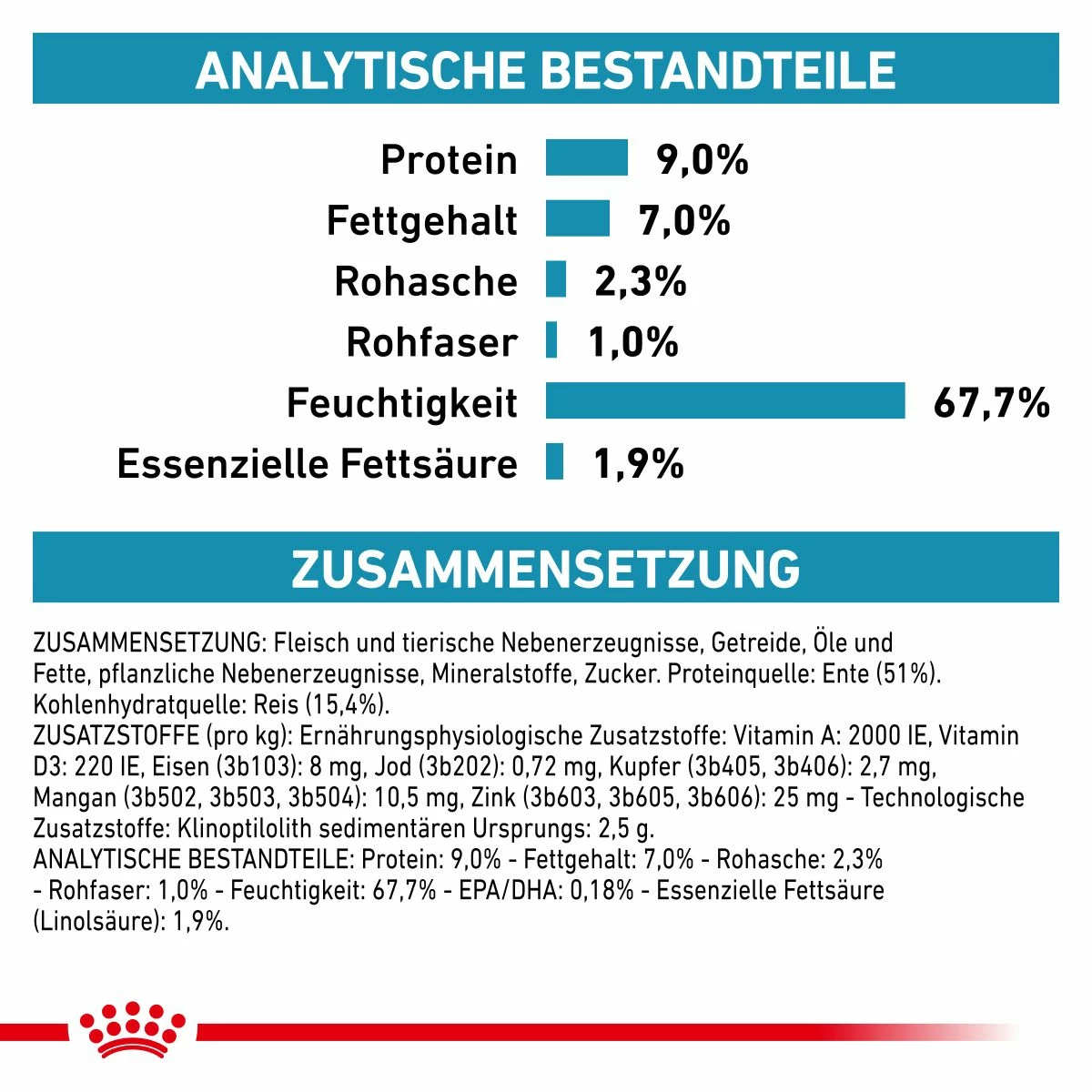 Bei diesem Produkt handelt es sich um eine tierärztliche Nahrung aus dem Sortiment Veterinary Health Nutrition von ROYAL CANIN®. Dementsprechend ist es wichtig, dass das Futter nur auf Empfehlung einer Tierärztin oder eines Tierarztes gefüttert wird. So kann sichergestellt werden, dass Ihr Tier genau die Nahrung erhält, die es wirklich benötigt. Eine Nahrungsumstellung sollte sorgfältig und schrittweise über einen Zeitraum von 7–10 Tagen erfolgen. Achten Sie auf die korrekte Portionengröße – insbesondere bei Mischfütterung.