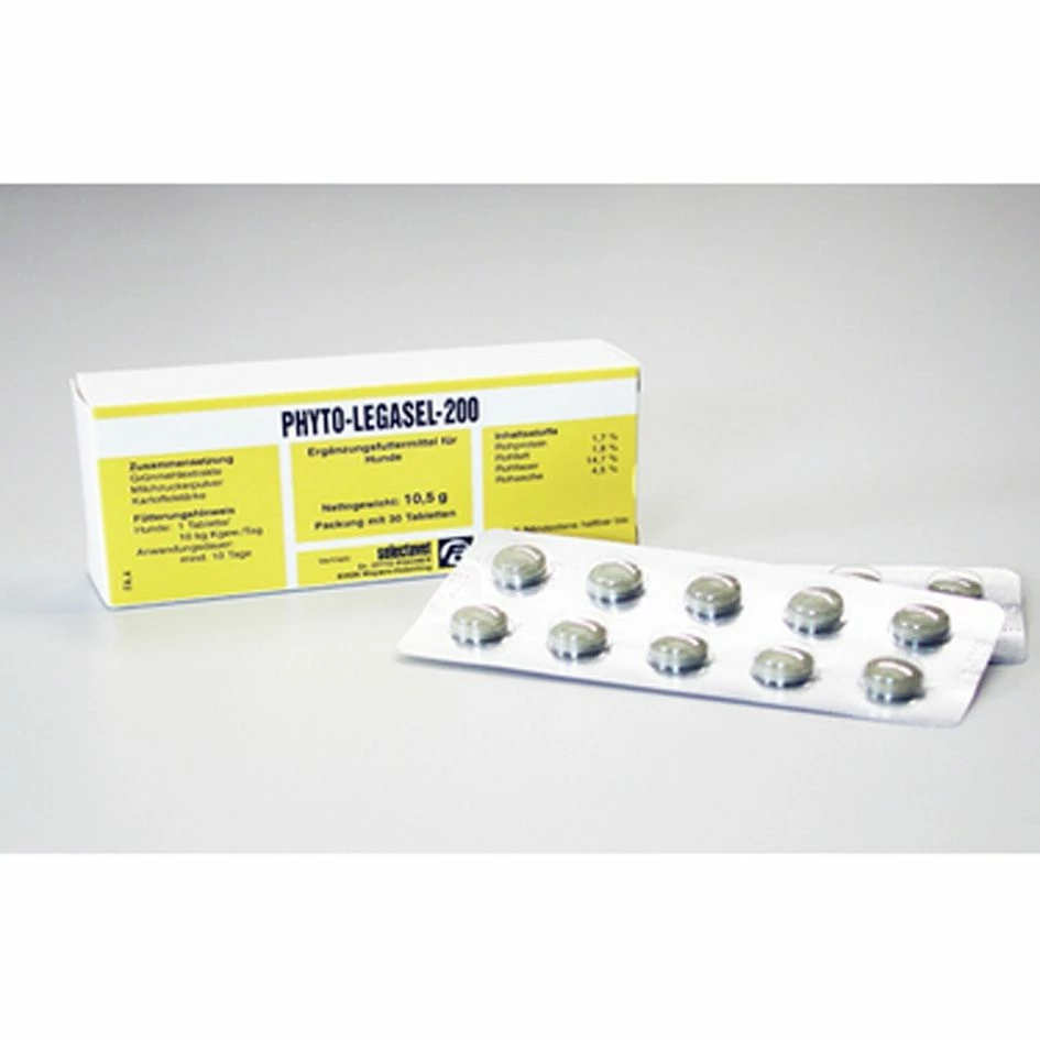 Phyto-Legasel 200 ist ein Ergänzungsfuttermittel für Hunde, das die Extrakte zweier Pflanzen enthält: