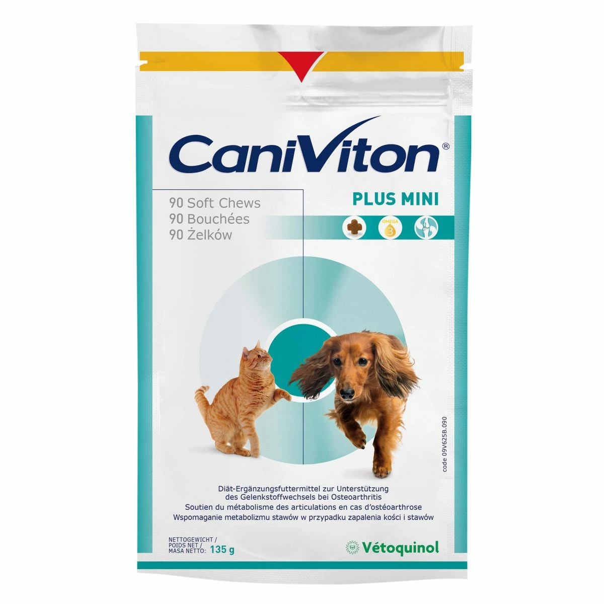 Caniviton Plus Mini ist ein Diät-Ergänzungsfuttermittel für Katzen und Hunde zur Unterstützung des Gelenkstoffwechsels bei Osteoarthritis – optimale Ergebnisse werden erzielt, wenn Caniviton Plus Mini zusammen mit einem Alleinfuttermittel gefüttert wird, das den gleichen besonderen Ernährungszweck erfüllt. Caniviton Plus Mini enthält